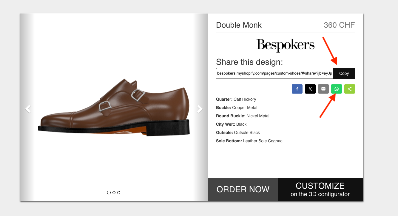 Copiez le lien unique en cliquant sur le bouton "copier" ou "copy" selon la langue de votre navigateur, puis envoyez-le à Bespokers par e-mail, par la page de contact ou via WhatsApp.